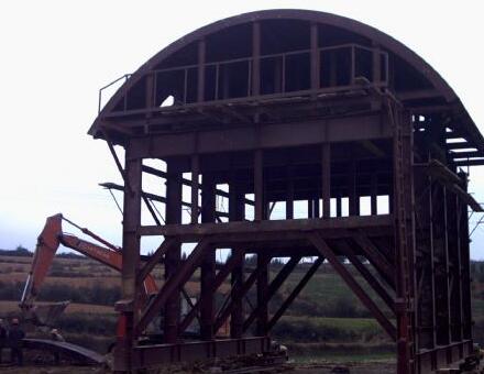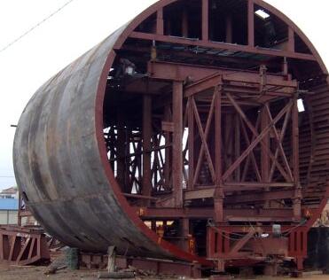 西安襯砌臺車主要用于中長隧道施工中,對施工進度、砼表面質量要求較高。此類襯砌臺車設計為整體鋼模板、液壓油缸脫立模,施工中靠絲桿千斤支撐,電動減速機自動行走或油缸步進式自動行走,全部采用砼輸送泵車灌注。大部分襯砌臺車為該類臺車。設計該類襯砌臺車時,在滿足通過凈空要求的情況下,應考慮門架內側斜支撐下部安裝位置,盡可能靠近立柱下部,使之受力最好。門架橫梁應足夠高,常規(guī)鐵路隧道不小于400mm,公路隧道不小于5500mm。模板端面與門架間的調整最小距離不小于250mm,否則將造成前后襯砌段搭接困難。
